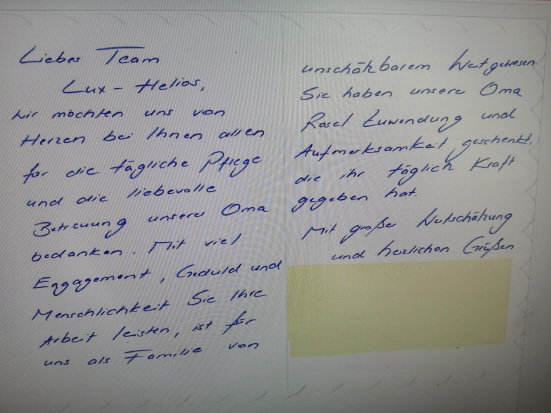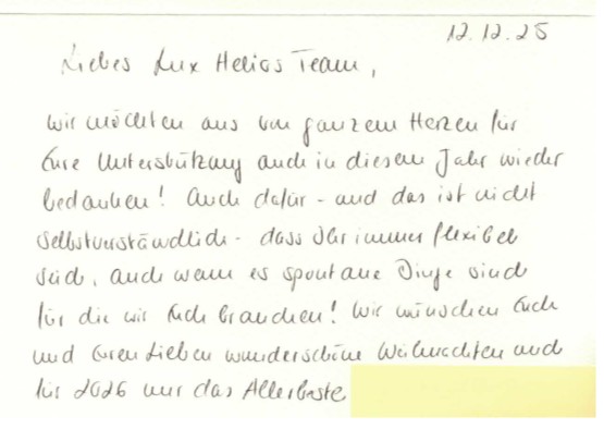 Ein herzliches Dankeschön für die liebevollen Worte im Namen unseres gesamten Teams LUX-HELIOS.